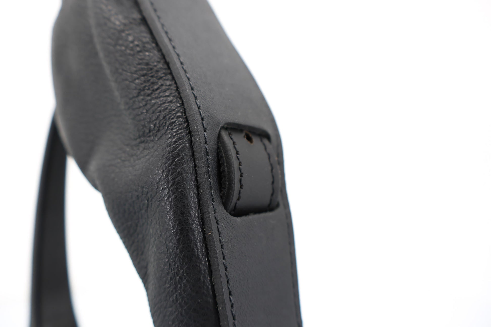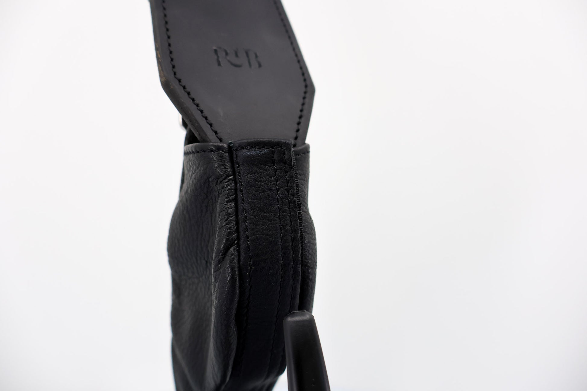 The product is made of black, durable leather material with a reinforced outer surface for optimal durability. At the same time, the material is developed with light stretch, so that the cover fits tightly and stably around the strap without affecting function or movement.